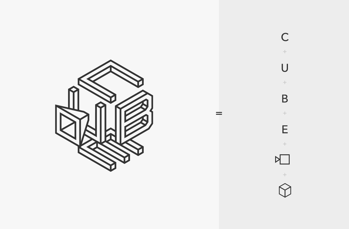 If we break down the complete symbol into its components, we can discover four letters and a stylized lens of a camera. Altogether, it illustrates a cube shape. The symbol can be used independently in small or large sizes on any platform.