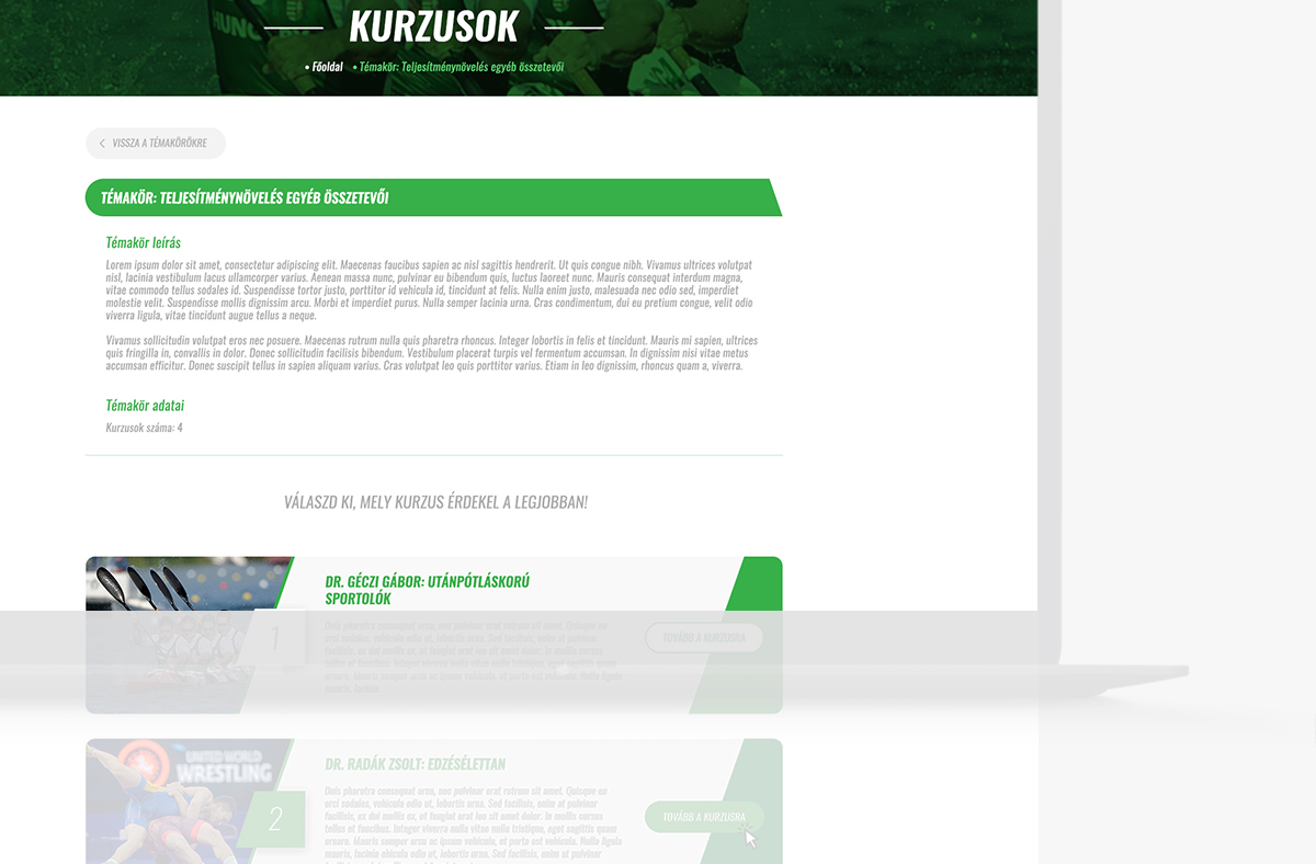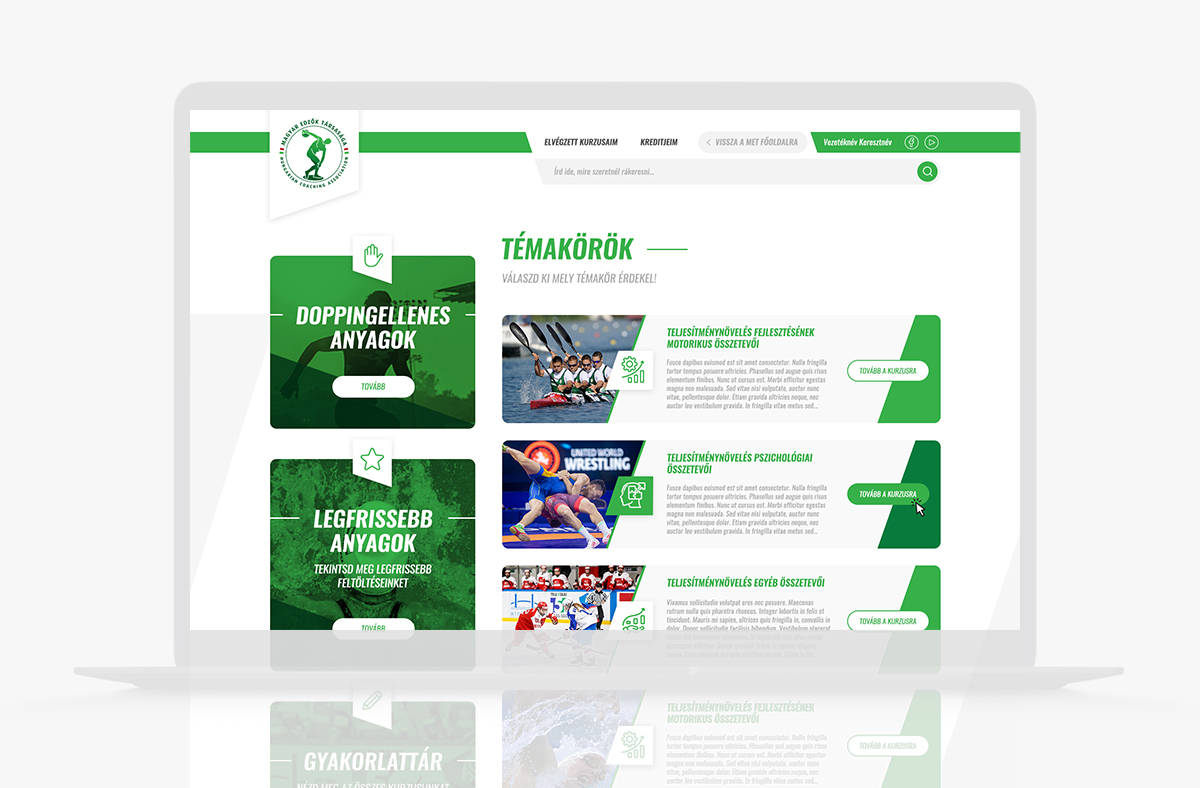 The MET (the acronym stands for „Magyar Edzők Társasága”, in English: „Hungarian Coach Union”) which formed 25 years ago, is a business federation civic union. Its main task is to represent their members and to organise refresher courses for them in order to help them in their career. I made an „E-learning” interface for them, which was a supplement to their website, the magyaredzo.hu.